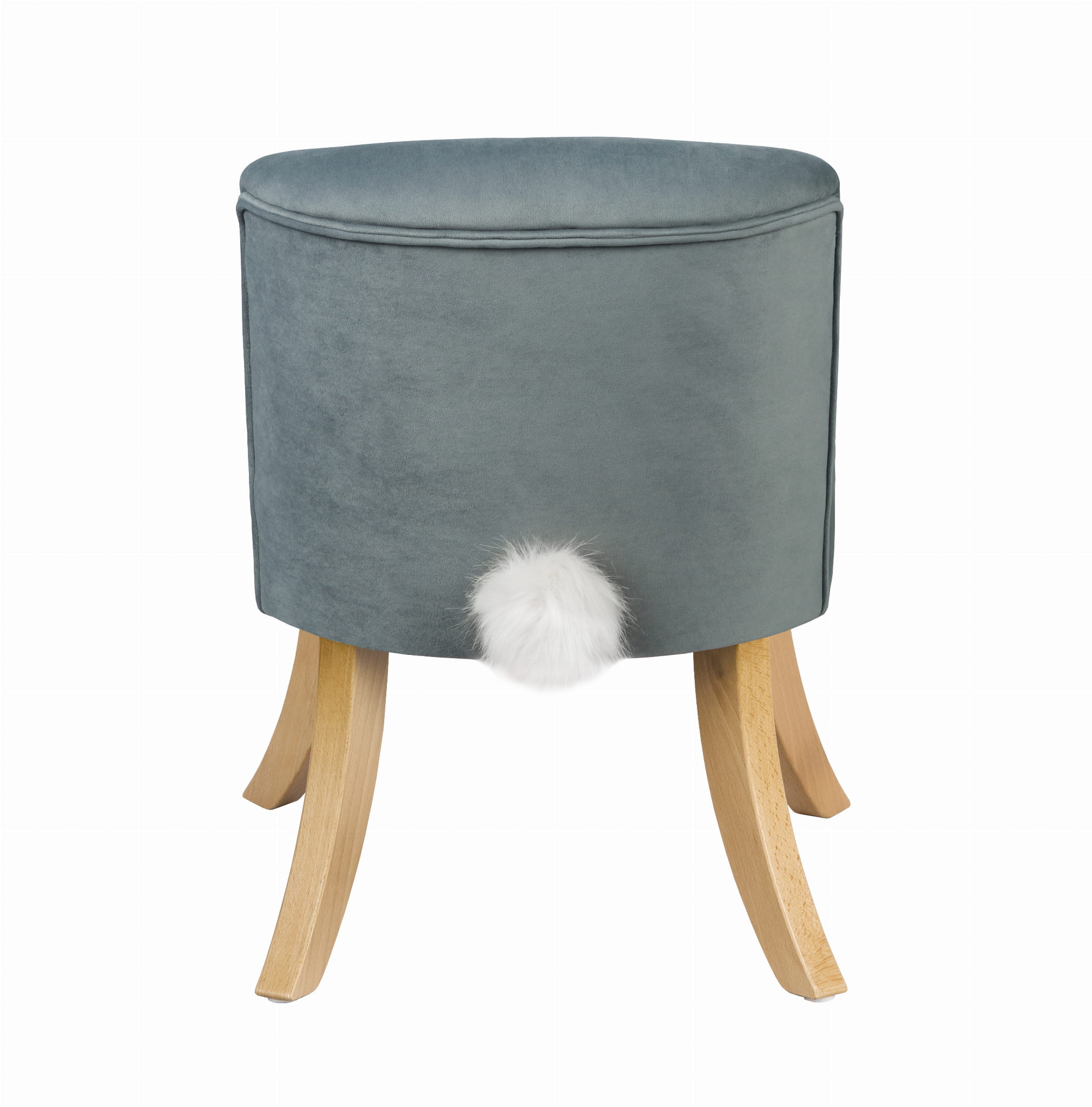Fotelik posiada wygodne siedzisko i stabilne, drewniane nóżki, które z czasem można wymienić na dłuższe, aby dopasować go do wzrostu dziecka. Dodatkowo, fotelik wyposażony jest w króliczy ogonek, który sprawi, że Twoje dziecko poczuje się jak w bajce.