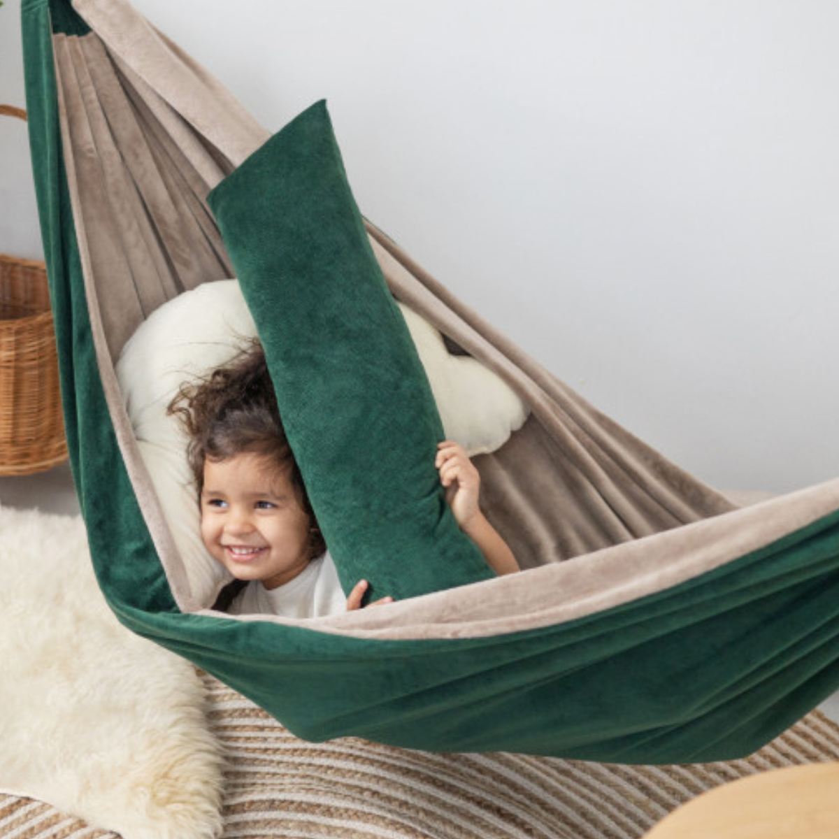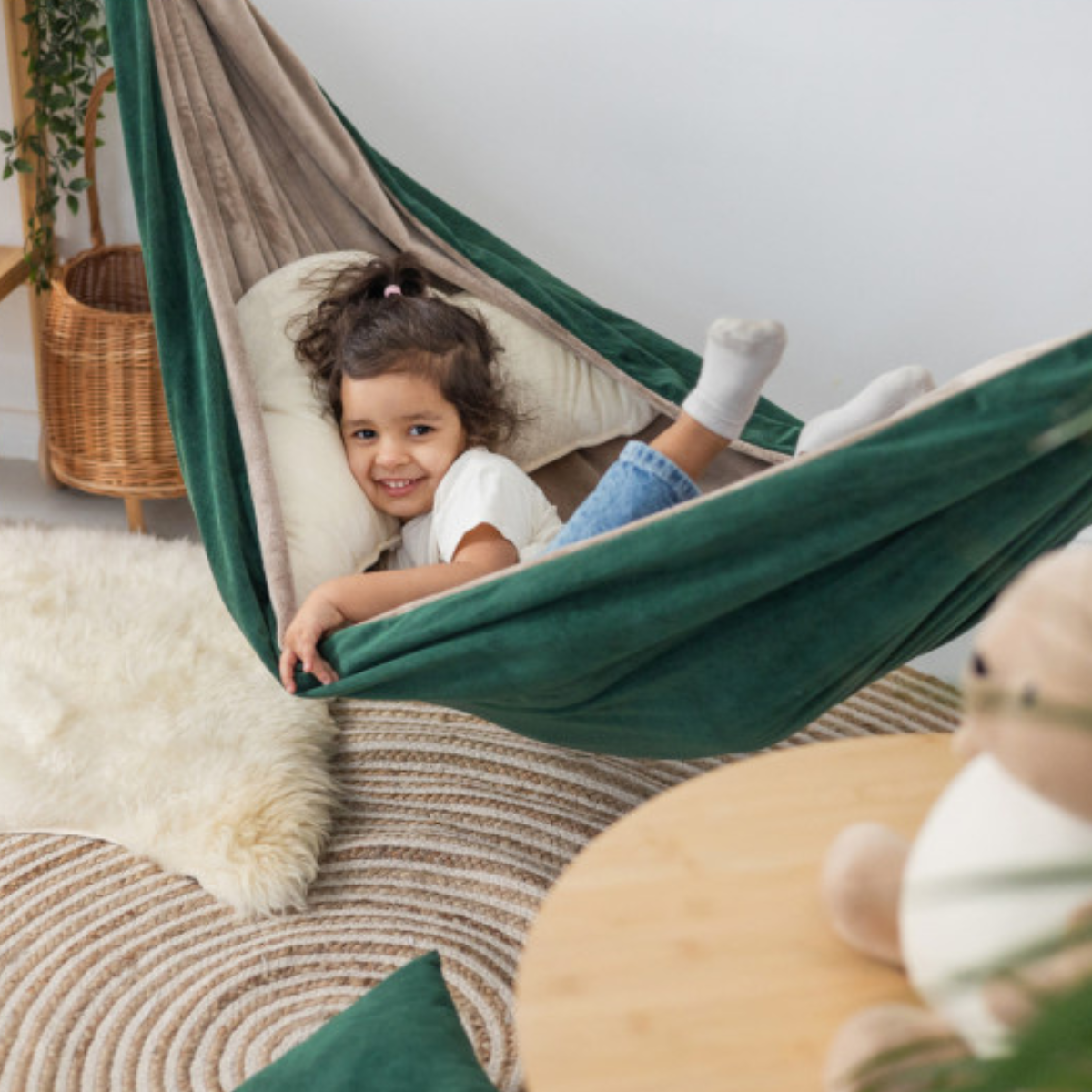 Hamak dziecięcy „Leśna Pierzynka” powstał z myślą o stworzeniu przestrzeni, która koi, wycisza i otula niczym leśny mech pod stopami. Zainspirowany barwami natury i harmonią lasu, ten ręcznie szyty hamak to nie tylko estetyczny dodatek do dziecięcego pokoju, ale przede wszystkim funkcjonalne, bezpieczne miejsce do wypoczynku, zabawy i marzeń.