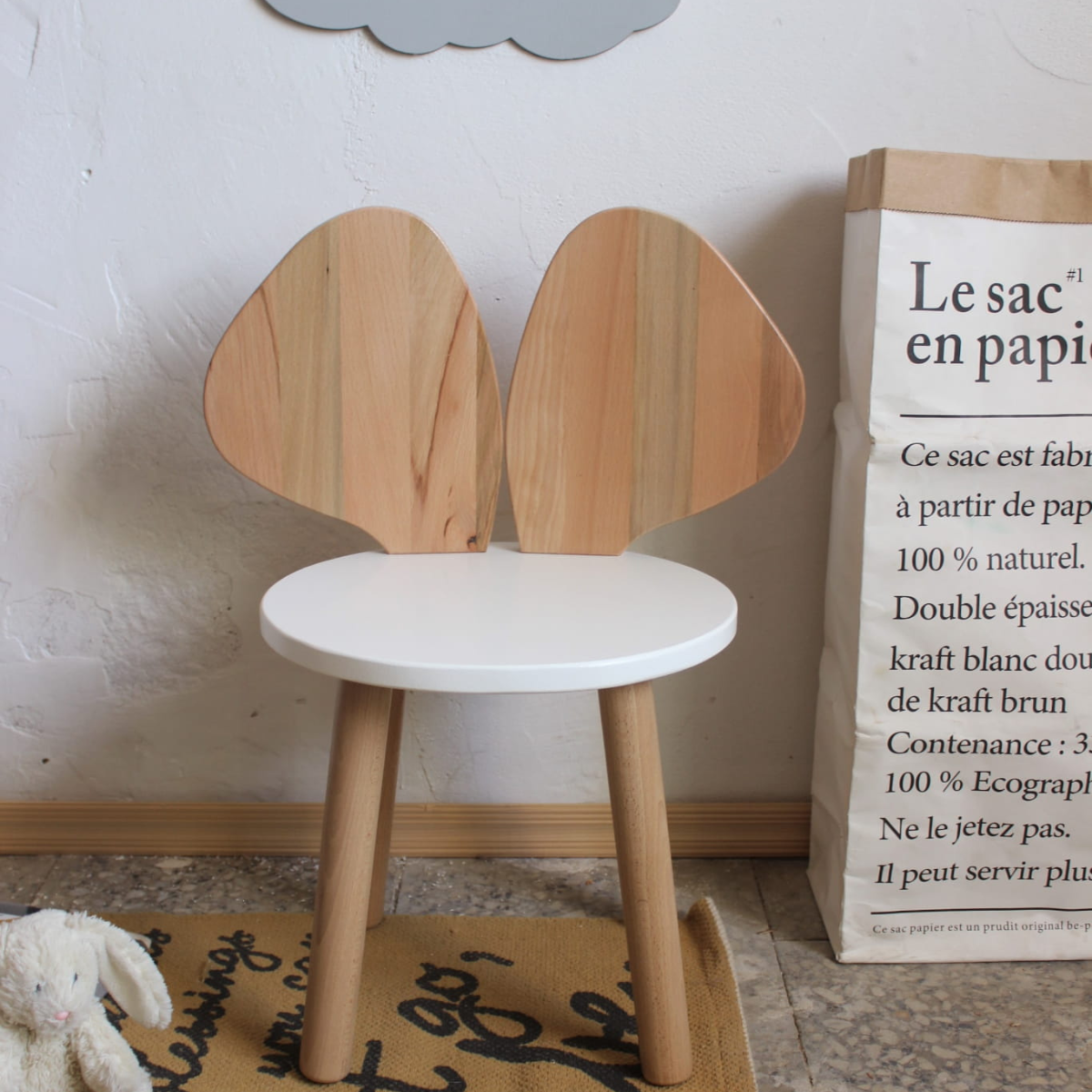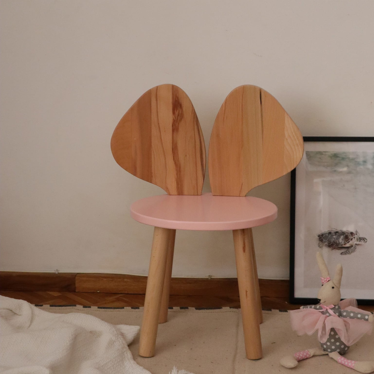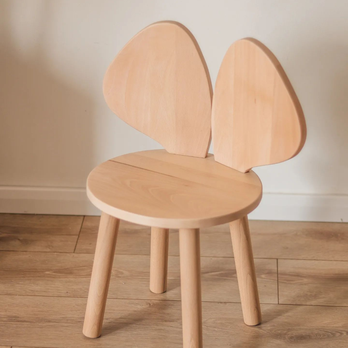 Drewniane krzesełko dziecięce w kształcie myszki – solidne, stabilne i urocze