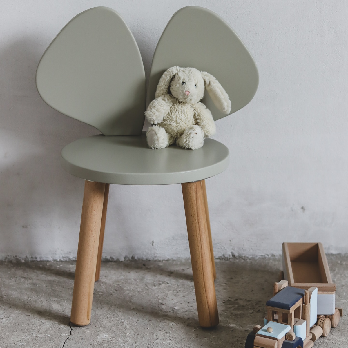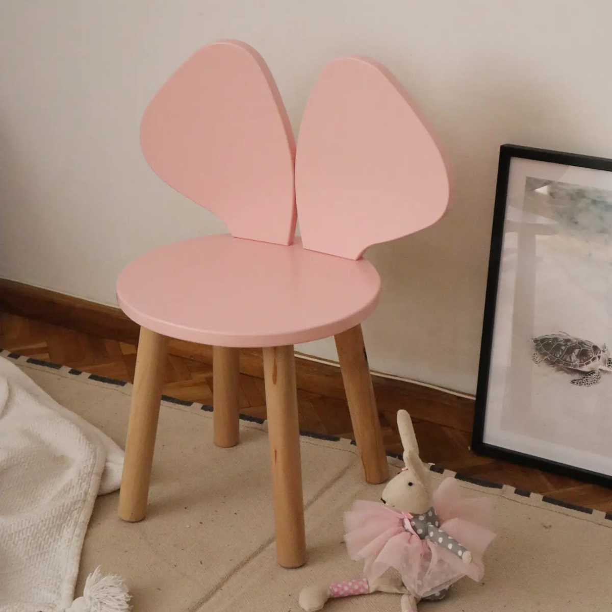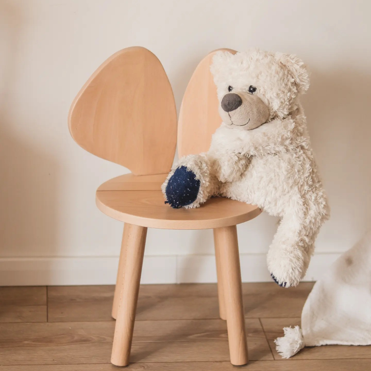 Drewniane krzesełko dziecięce w kształcie myszki – solidne, stabilne i urocze