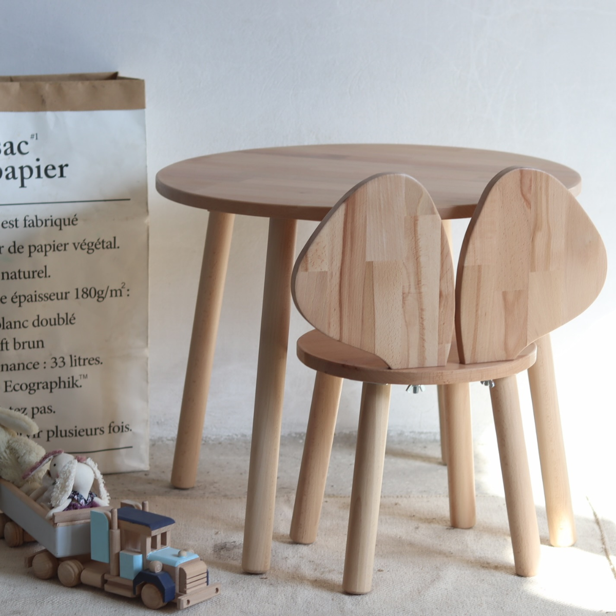 Krzesełko myszka to połączenie naturalnego designu, trwałości i funkcjonalności. Wykonane w całości z drewna bukowego, pięknie prezentuje się w dziecięcych wnętrzach i pobudza wyobraźnię malucha. To idealny wybór do kącika zabaw lub małego stolika.