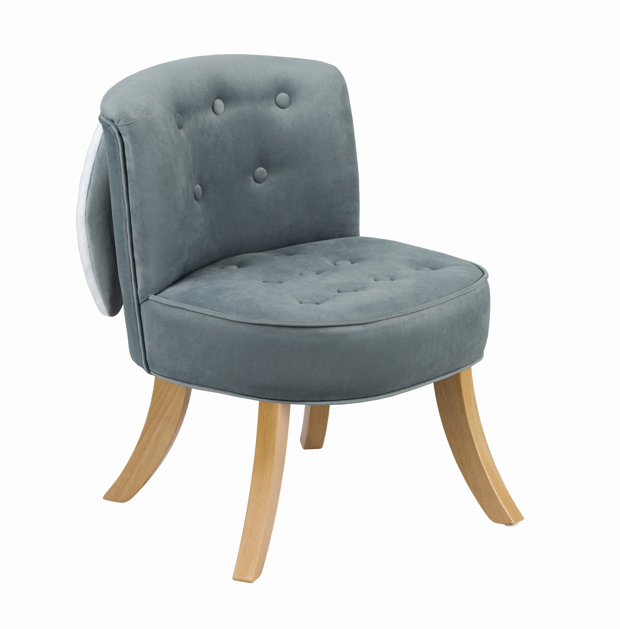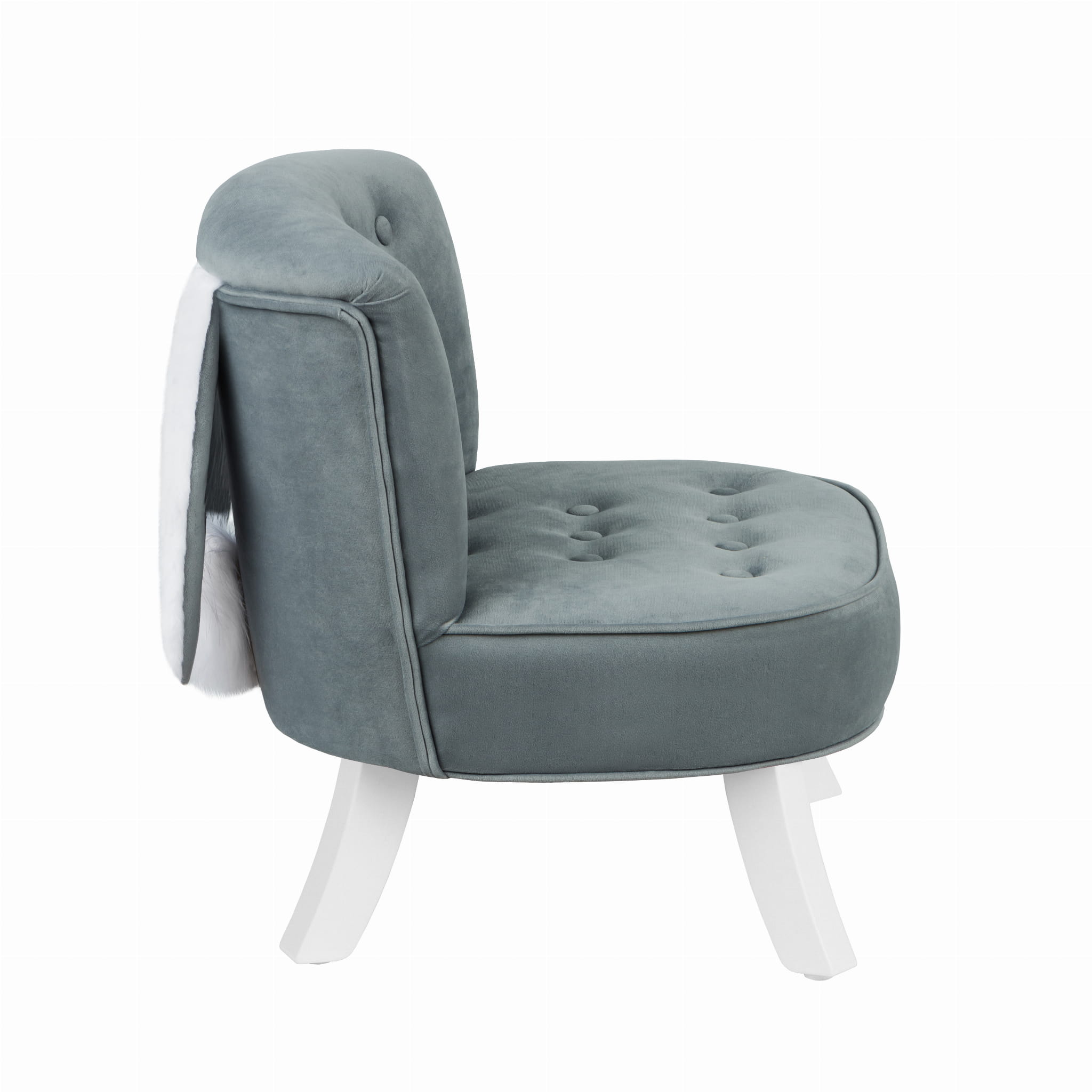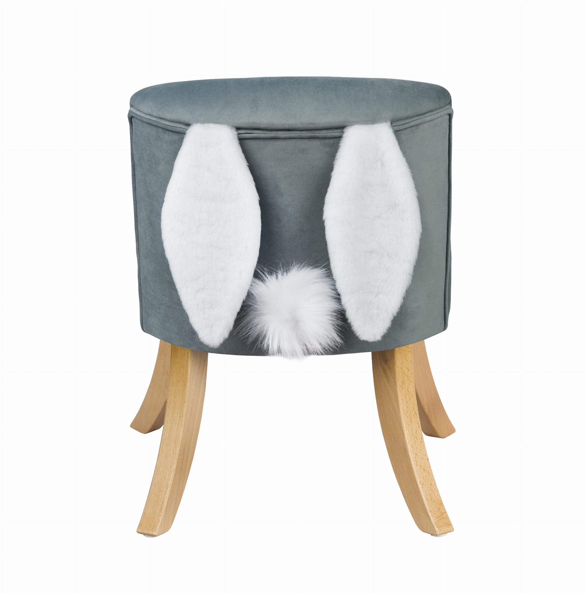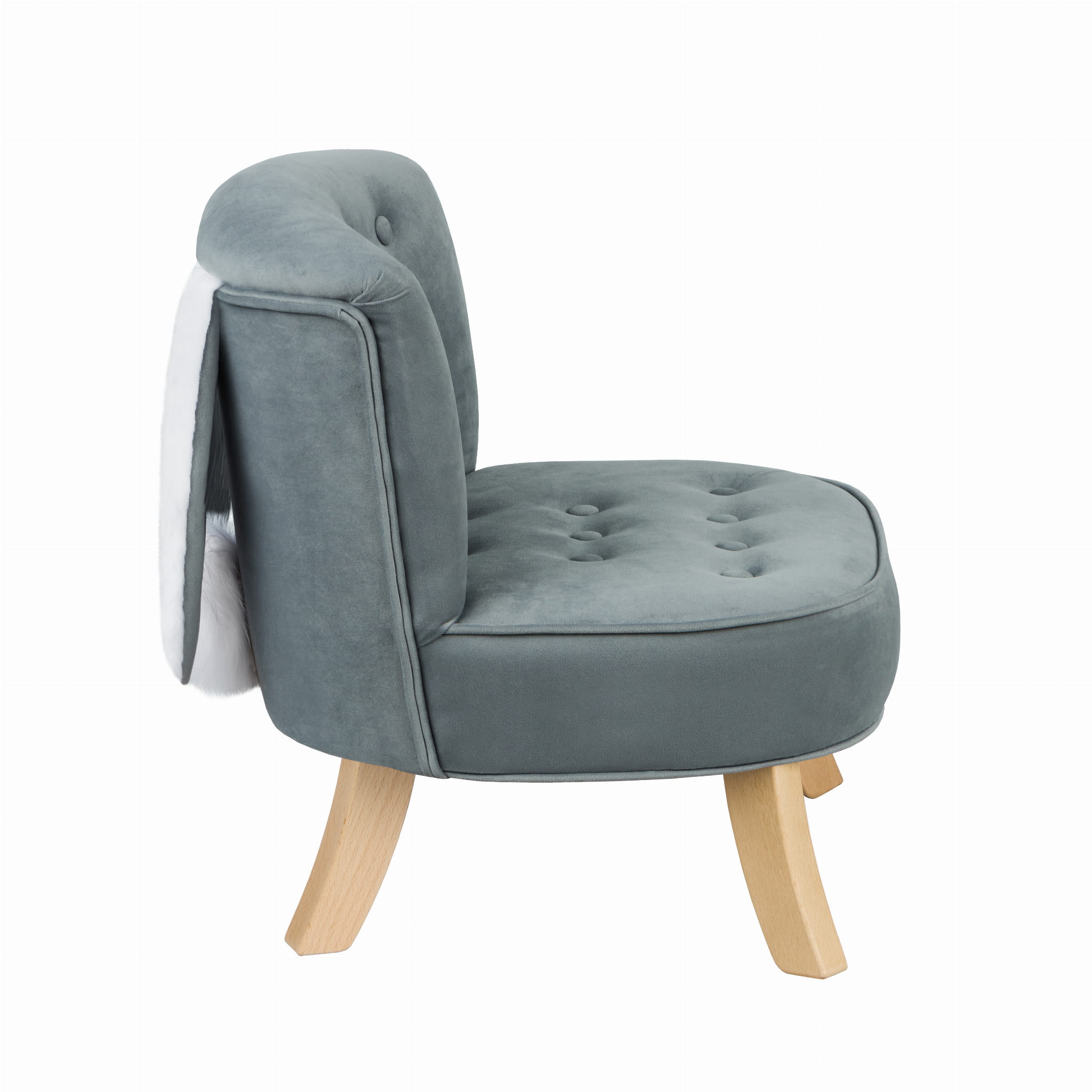 Fotelik posiada wygodne siedzisko i stabilne, drewniane nóżki, które z czasem można wymienić na dłuższe, aby dopasować go do wzrostu dziecka. Dodatkowo, fotelik wyposażony jest w uszka królika i ogonek, które sprawią, że Twoje dziecko poczuje się jak w bajce.