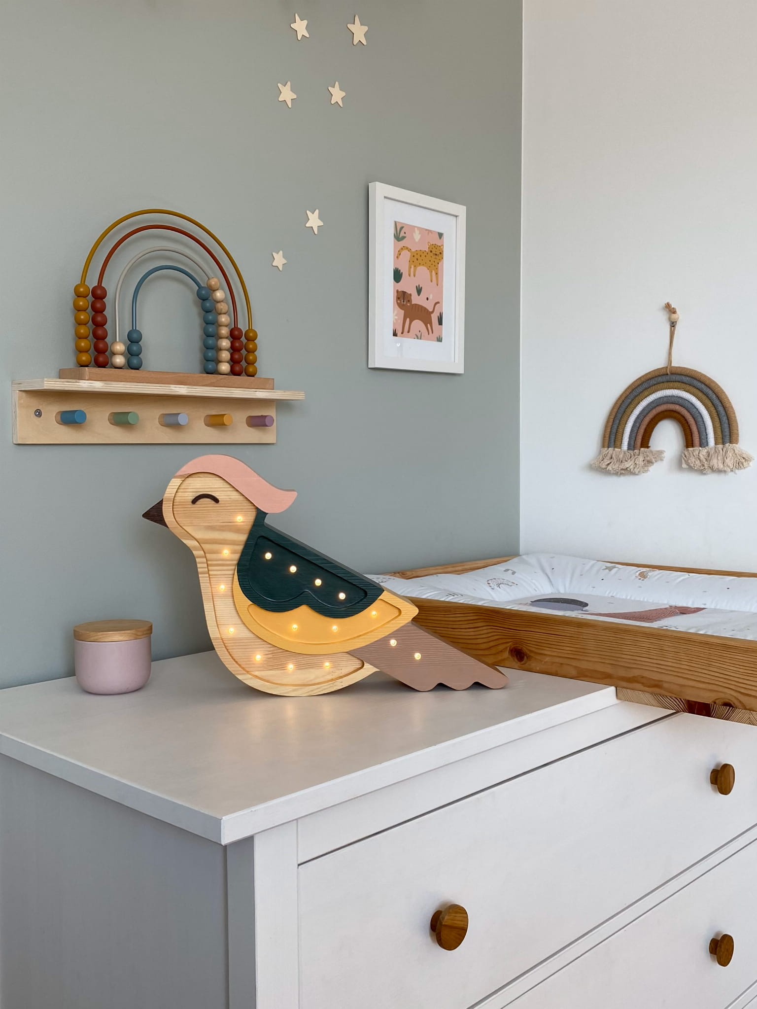 Jej oryginalny design wprowadza wyjątkową i magiczną atmosferę w pokoju malucha. Jej kolorystyka jest inspirowana naturą, dlatego doskonale sprawdzi się we wszystkich aranżacjach.