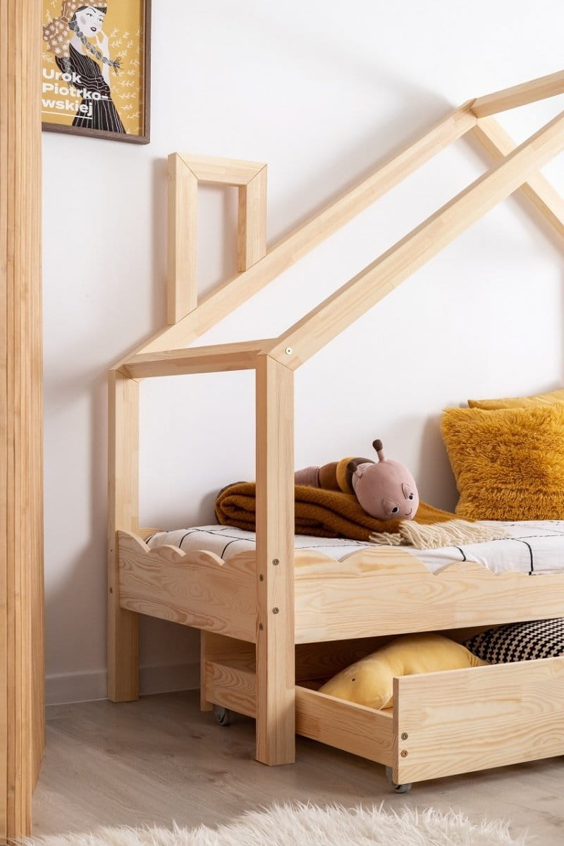 Urocze łóżka domki Luna D wykonane są z drewna sosnowego dzięki czemu są stylowe i bezpieczne oraz dają ogromne możliwości aranżacyjne. Do produkcji użyto wyłącznie litego drewna sosnowego najwyższej jakości. Dbamy o to, aby każde łóżko dziecięce drewniane posiadało zaokrąglone brzegi bez żadnych, ostrych elementów.