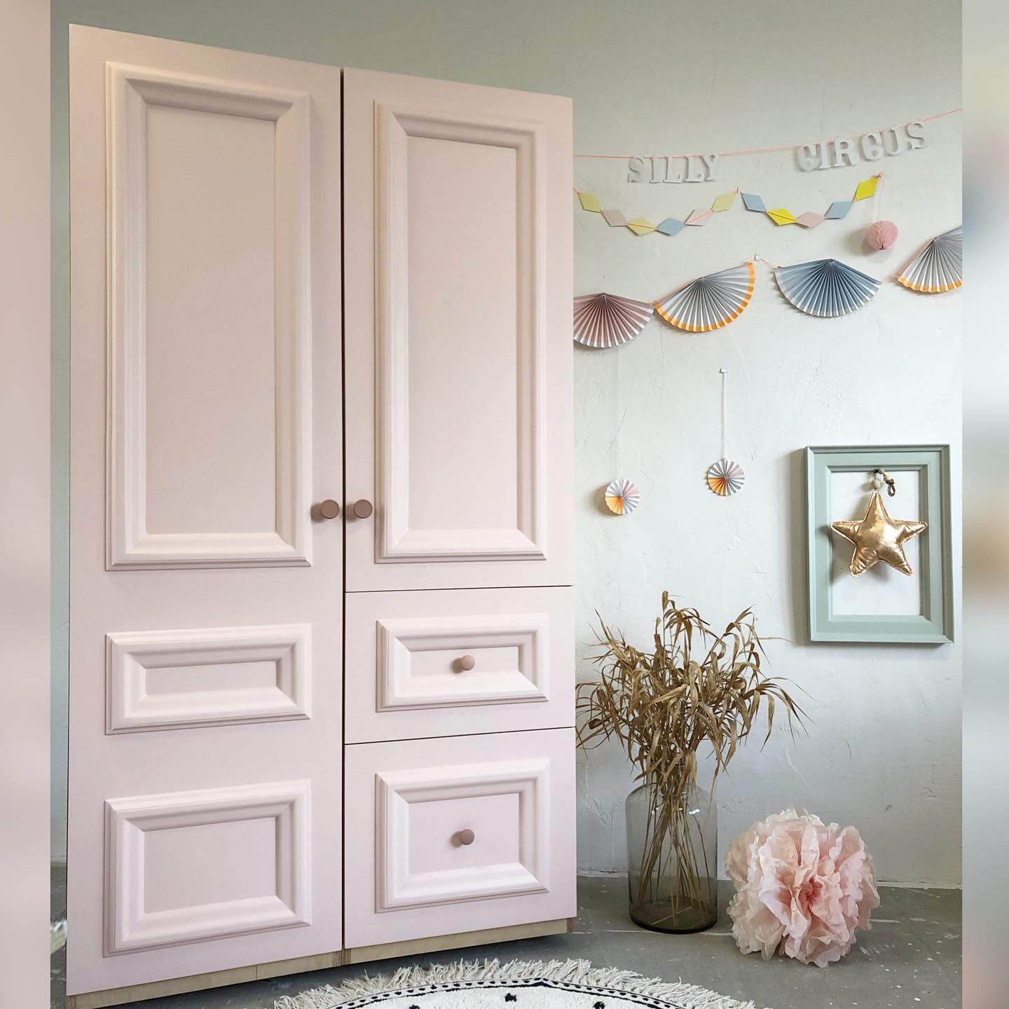 Piękna drewniana szafa w kolorze pudrowego różu - designerski akcent w pokoju małej księżniczki!