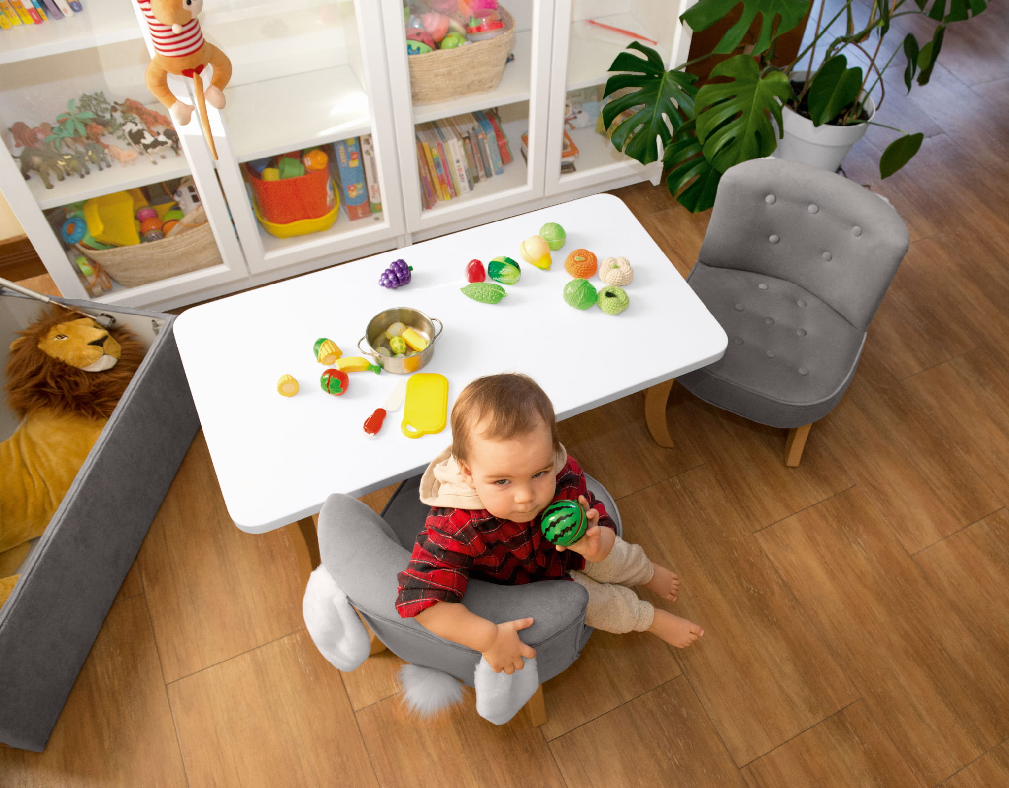 Ten drewniany stolik to idealne miejsce do zabawy i nauki dla Twojego dziecka. W zależności od waszych potrzeb i wyobraźni, może stać się miejscem spotkań przy herbatce lub służyć jako blat na którym z pod małych rączek wychodzą prawdziwe dzieła sztuki.